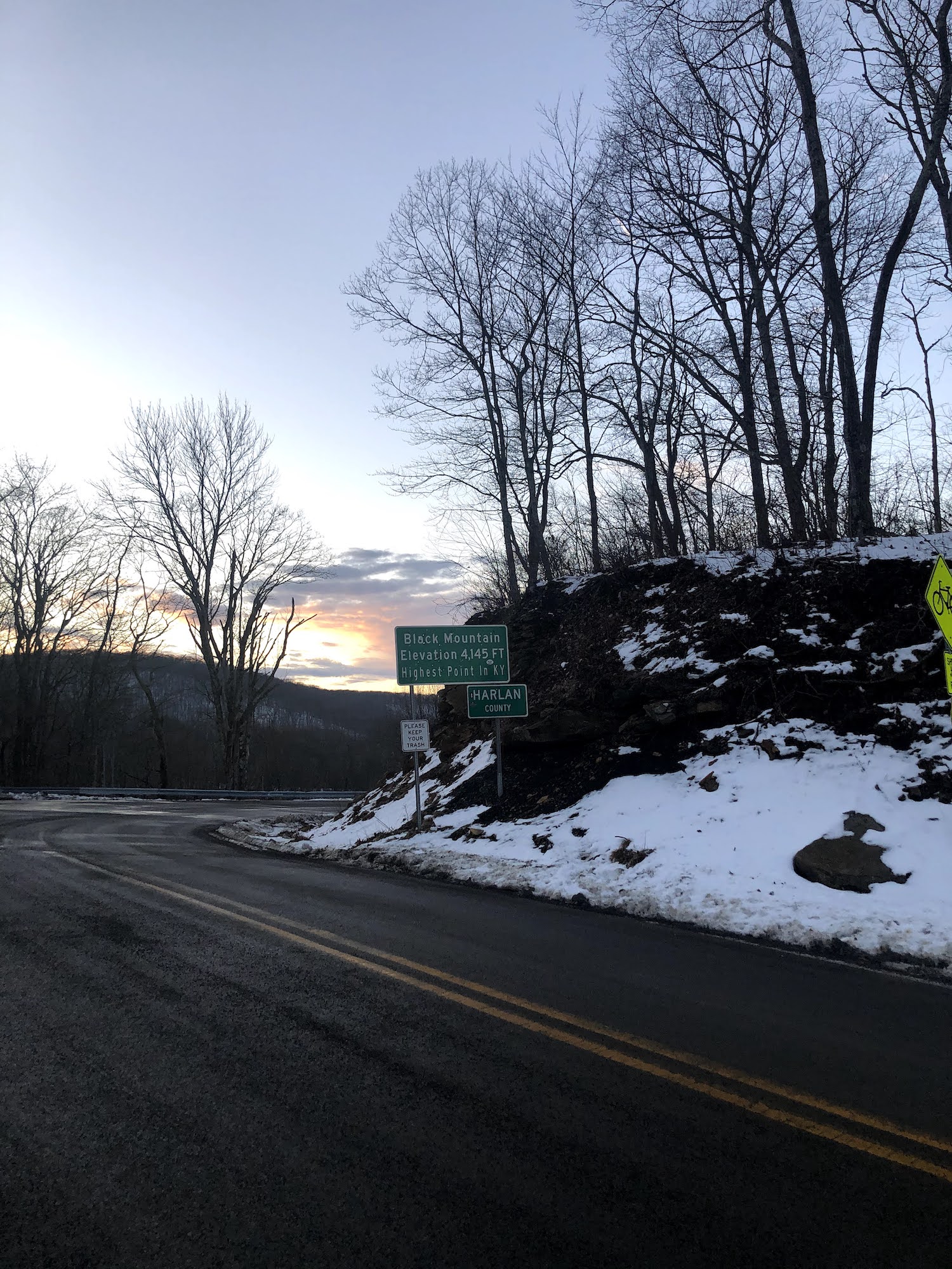 I headed out making a straight shot from St. Louis to the Kentucky high point, Black Mountain on December 29th. It’s about an eight-and-a-half-hour drive and with the time change I got in around 5pm EST. The trail head has two pull off parking areas, one of which is actually across the Virginia border which brings into question is the Kentucky high point really in Kentucky? It sounds crazy, and it’s a joke, but I do continue to be amazed at the unclear elevations of some of these mountains. On Wikipedia it says the elevation is 4,145ft, same with the road sign, the plaque at the top of the mountain, also in the Wikipedia article calls it 4,139 ft and on all trails is 4,131 ft. Well, this is a blog post trip report, and we are on the internet so dare I say the mountain is 6,350 ft.